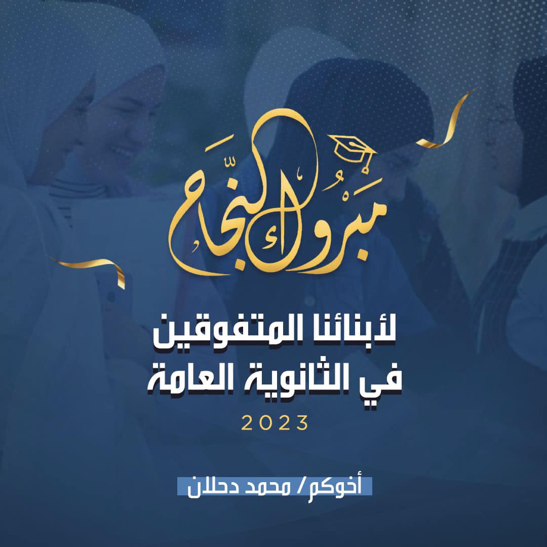 تقدم النائب محمد دحلان قائد تيار الإصلاح الديمقراطي بحركة فتح، اليوم الخميس بالتهنئة للناجحين من طلبة الثانوية العامة لهذا العام 2023.