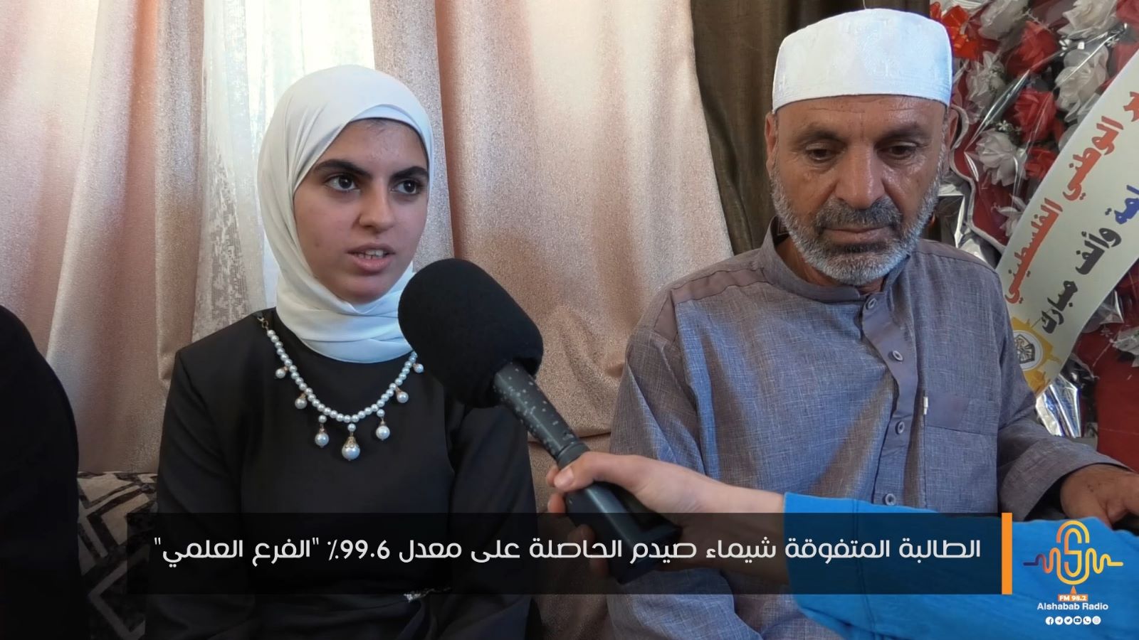 الطالبة المتفوقة شيماء صيدم الحاصلة على معدل 99.6% الفرع العلمي