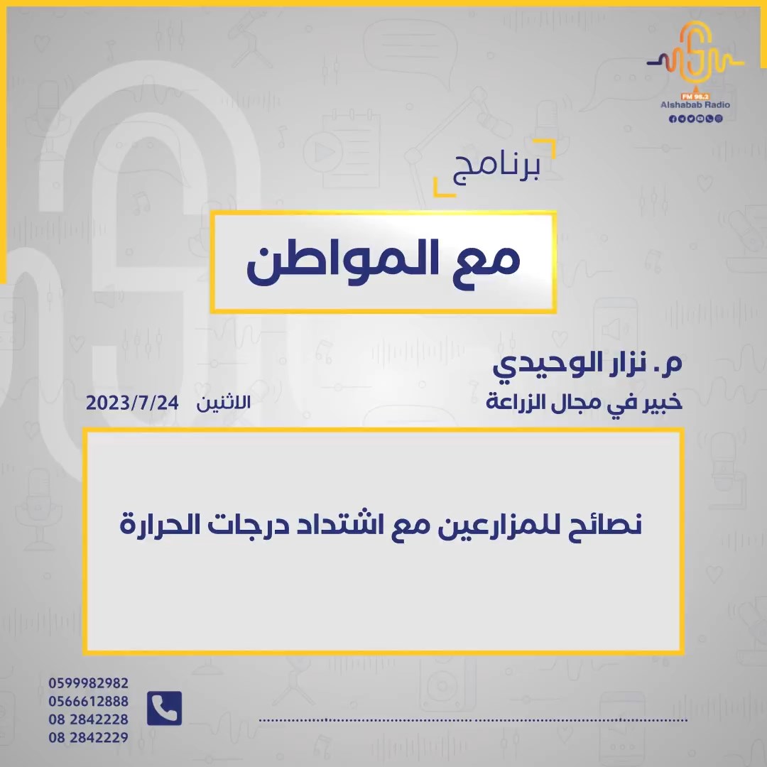 م. نزار الوحيدي.. نصائح للمزارعين مع اشتداد درجات الحرارة