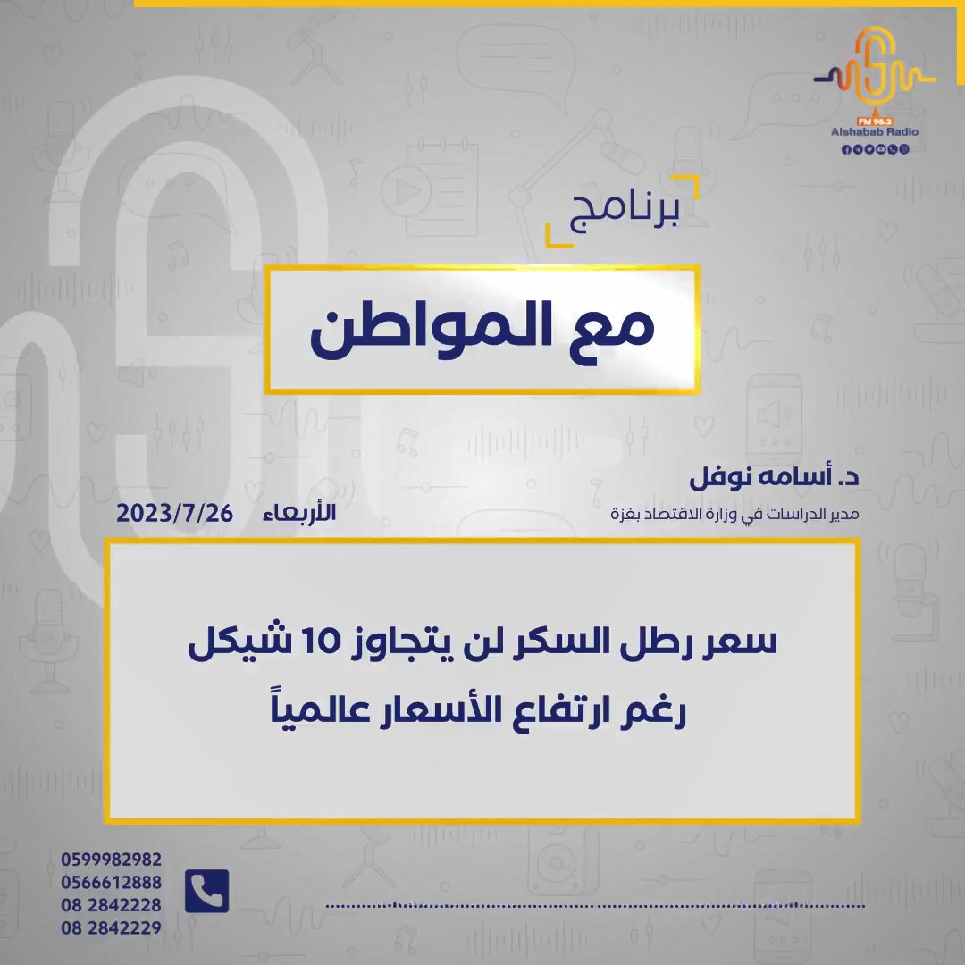 د. أسامه نوفل || سعر رطل السكر لن يتجاوز 10 شيكل رغم ارتفاع الأسعار عالمياً