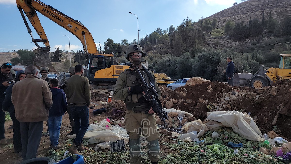 كما جرفت قوات الاحتلال، اليوم، اراضي زراعية وهدمت سلاسل حجرية، في خربة سوبا غرب الخليل.