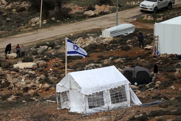 الكوفية نصب مستوطنون، اليوم الثلاثاء، خياما على أراضي المواطنين، شمال الخليل.