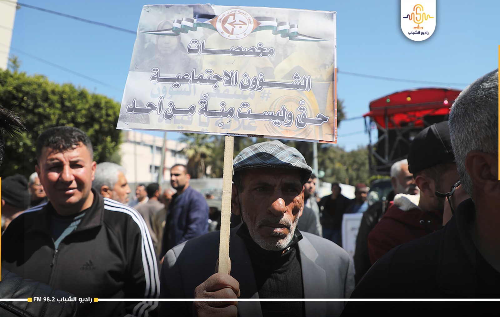 ورفع المشاركون من الفقراء والمحتاجين والمرضى وكبار السن وذوي الاحتياجات الخاصة، لافتات تطالب الحكومة في رام الله بصرف مستحقاتهم كاملة دون خصومات وإنصاف حقوقهم.
