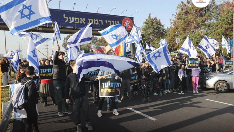 وتشارك حشود من الإسرائيليين ابتداءً من صباح اليوم الثلاثاء، في مظاهرات في مناطق واسعة داخل اسرائيل، كجزء من "يوم التشويش".