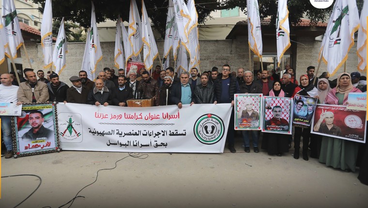 ورفع المشاركون صور عدد من الأسرى، ولافتات تطالب بوقف سياسات التنكيل التي تنتهجها إدارة سجون الاحتلال، وفي مقدمتها الاعتقال الإداري والإهمال الطبي المتعمد.