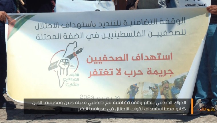 الحراك الصحفي ينظم وقفة تضامنية مع صحفيي مدينة جنين ومخيمها الذين كانو محط استهداف لقوات الاحتلال في عدوانها الأخير